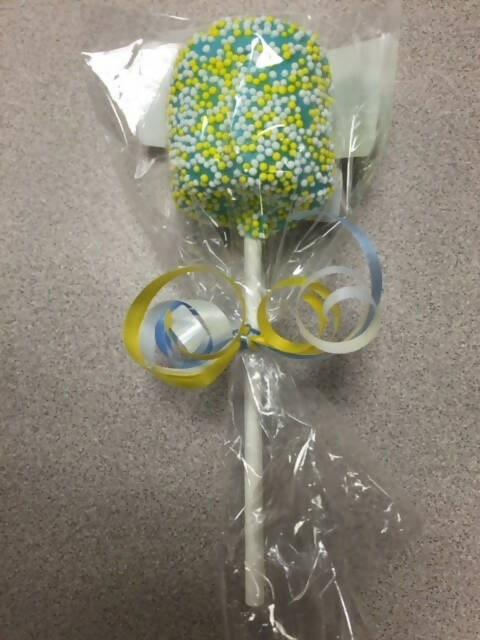 These jumbo marshmallows are dipped in white, milk or dark chocolate, and decorated with holiday themed sprinkles.  Each order contains 6, individually wrapped pieces.