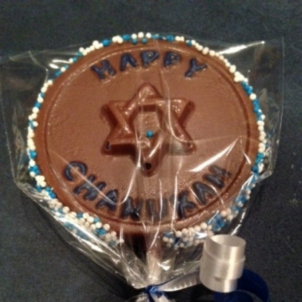 Enjoy a sweet little treat during the festival of lights. Made with milk chocolate and decorated with a sprinkle of blue and white, finished off with coordinating ribbon.