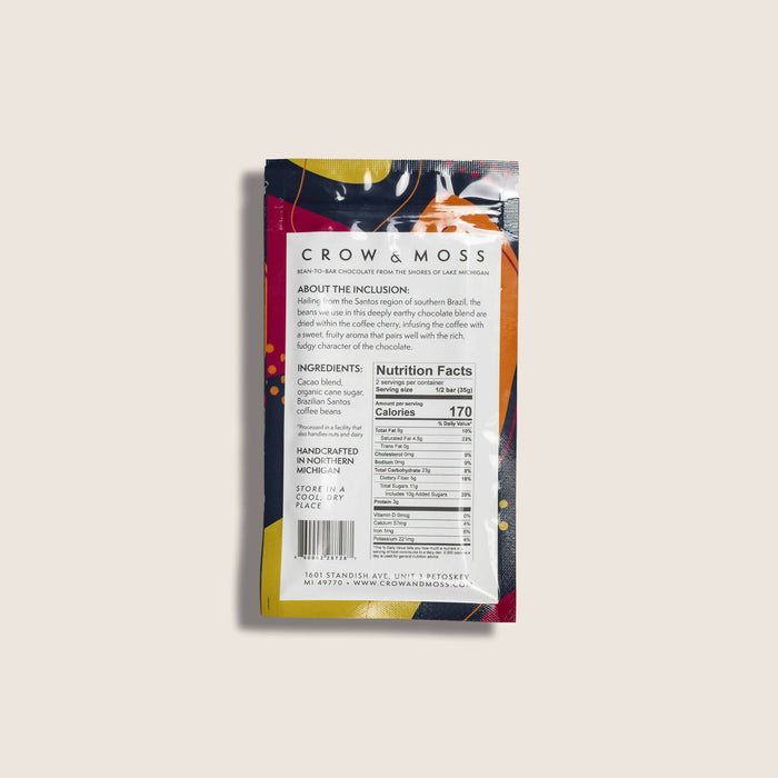 Ingredients: Honduran Wampusirpi Cacao, Organic Cane Sugar, Brazilian Santos Coffee