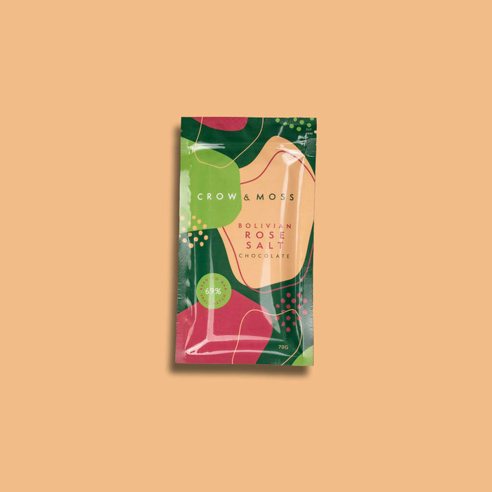 Bolivian Rose Salt is mined by hand from ancient salt deposits that formed millions of years ago deep within the Andes Mountain range. Its pale rose color and delicate flavor come from a broad range of trace minerals that compliment the nutty, well-rounded flavor profile of the Colombian Aruaca cacoa beans.