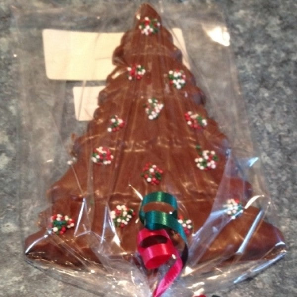 Made with 3 ounces of fine milk chocolate, hand decorated with just the right amount of nonpareils and finished off with holiday colored ribbon. Makes a great treat for anyone! Also available in white chocolate.