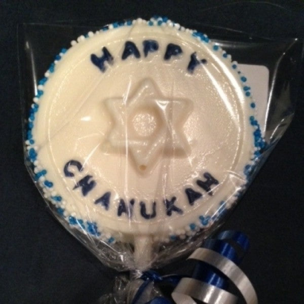 Enjoy a sweet little treat during the festival of lights. Made with milk chocolate and decorated with a sprinkle of blue and white, finished off with coordinating ribbon.