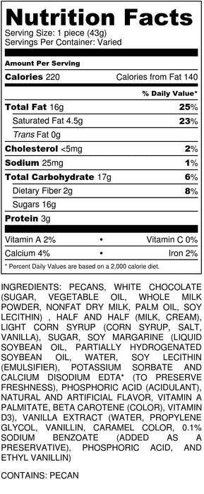 Our White Chocolate Pecan Caramillicans (similar to Turtles) are beautifully packaged in this nice gift box. Our fancy pecans are mixed with butter and rich caramel and then topped with white chocolate. This decorative gift box is great for a corporate or birthday gift. Buy your pecan candy treats today!